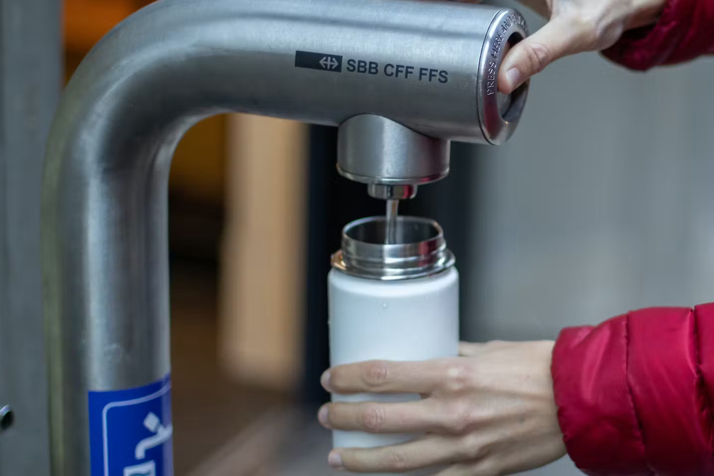 Un esempio di cosa vuol dire offrire acqua potabile gratuita ai viaggiatori quando arrivano nelle stazioni ferroviarie lo troviamo in Svizzera dove in diverse località si può riempire gratuitamente la borraccia presso i punti di distribuzione e ridurre così i rifiuti in plastica. In Svizzera le fontanelle delle stazioni FFS sono realizzate con le forme e i colori più svariati: alcune sono in metallo, altre in cemento e altre sono scolpite nella pietra.