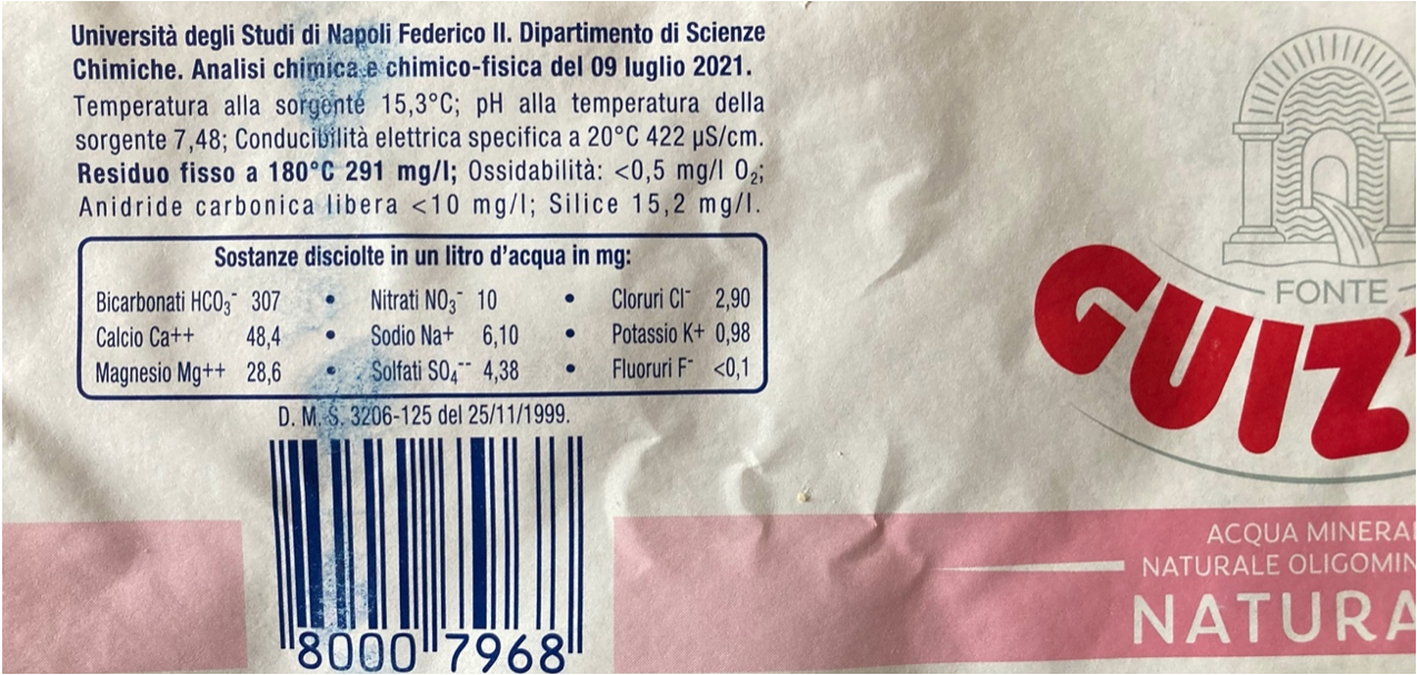 Abbiamo chiesto informazioni all’azienda ma non abbiamo ricevuto risposta. Sul sito, a proposito dell’acqua Fonte Guizza si legge: “È un’acqua oligominerale che sgorga microbiologicamente pura nel cuore delle risorgive venete con 291 mg/l di residuo fisso. La filosofia Guizza ne garantisce la qualità e l’affidabilità. L’elevata convenienza, raggiunta con l’ottimizzazione dei processi produttivi e un packaging semplice ed essenziale, è il risultato di anni di esperienza e ricerca mirate a rispondere alle esigenze del consumatore, in ogni momento della giornata.”