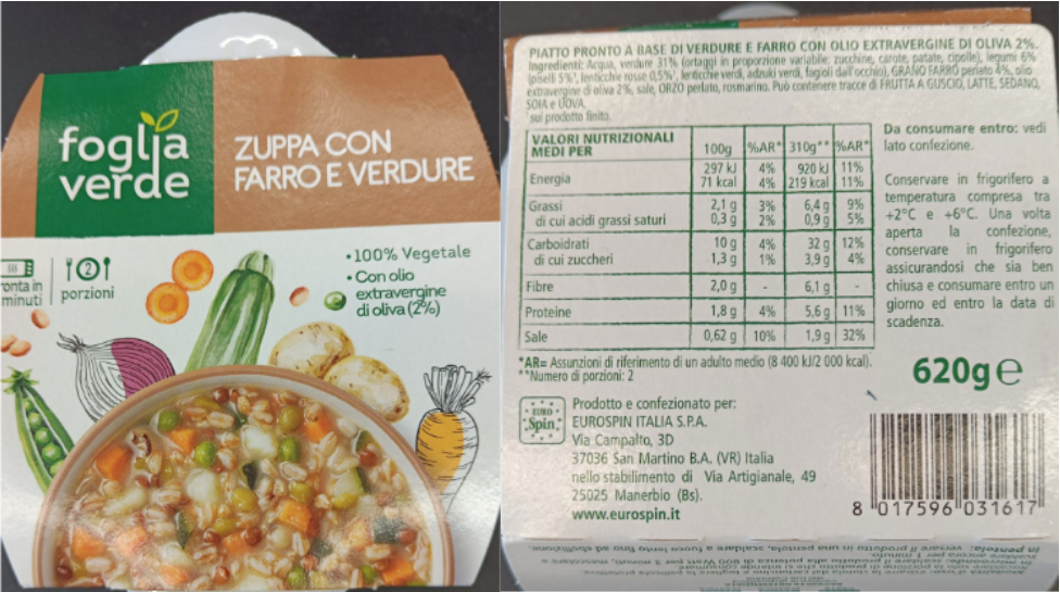 L’azienda Ortomad – La Linea Verde Spa ha prodotto la zuppa richiamata per Eurospin Italia Spa. Lo stabilimento di produzione si trova in aia Artigianale 49, a Manerbio, in provincia di Brescia.