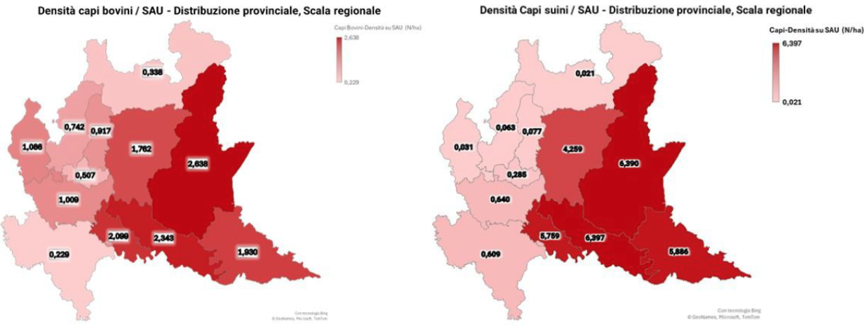 L’idea che la Lombardia ospiti il 10% degli allevamenti italiani è una sottostima che non tiene conto della densità reale dei capi. Se guardiamo ai numeri effettivi e non al numero di aziende, il quadro cambia drasticamente: