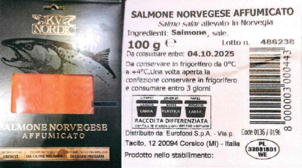 Il Ministero della Salute, invece, ha diffuso il richiamo da parte dell’operatore di un lotto di salmone norvegese affumicato a marchio KV Nordic. Il motivo indicato sull’avviso di richiamo è la presenza di Listeria monocytogenes. Il prodotto interessato è venduto in confezioni da 100 grammi, con il numero di lotto 486238 e la data di scadenza 04/10/2025. Anche i supermercati Carrefour e Tosano hanno segnalato il provvedimento (aggiornamento del 17/09/2025).
