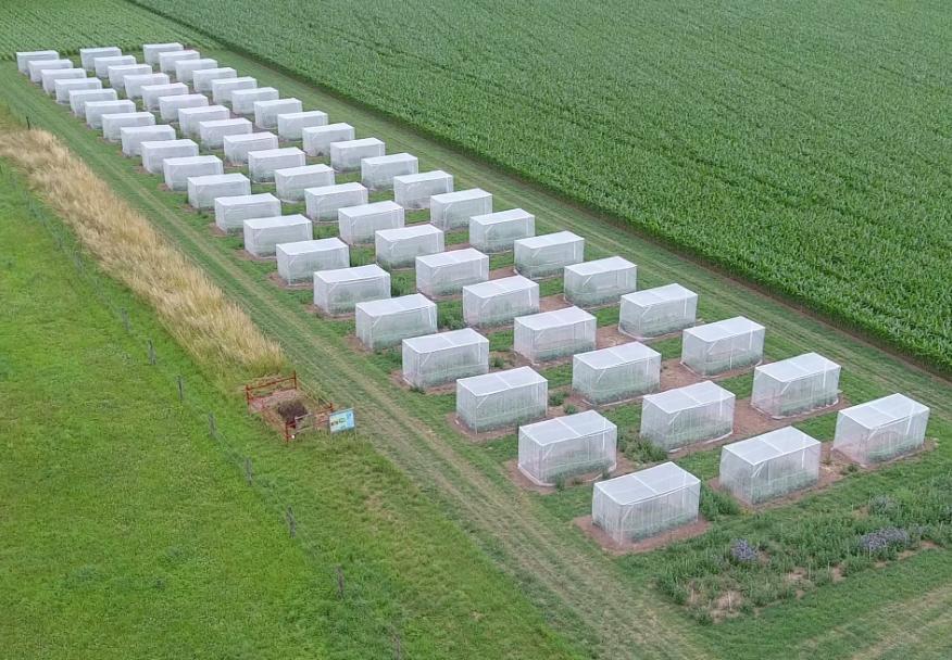 I ricercatori hanno creato 56 diversi habitat isolati (vedi foto sopra), con un assortimento da 2 a 16 specie di piante insieme alla colza. In alcuni di essi era presente solo quest’ultima, come modello di monocoltura. Nella metà degli habitat poi, sulla colza è stato spruzzato l’insetticida neonicotinoide clotianidina. Quindi hanno aspettato le covate, e visto differenze enormi nei diversi scenari.