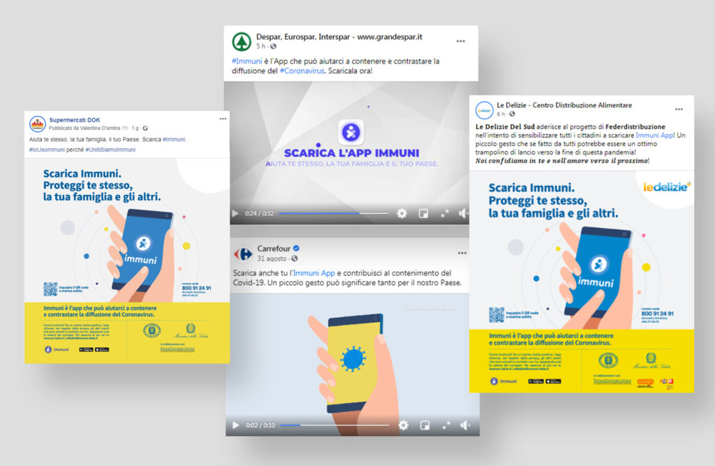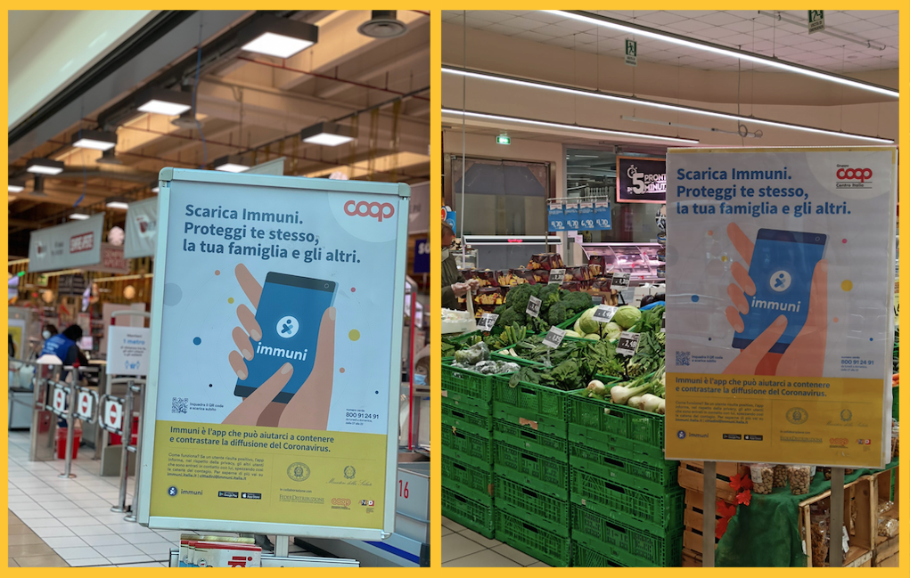 Continua la campagna di sensibilizzazione sull’utilizzo dell’App Immuni nei punti vendita e nelle comunicazioni ai clienti dei supermercati tra cui Coop, Gruppo Végé, Metro, Despar, Carrefour…