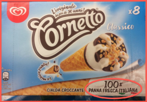 Cono alla panna: confronto fra Esselunga e Sammontana. Il produttore è lo stesso ma le ricette sono diverse. La crema di latte oltre il 13%!