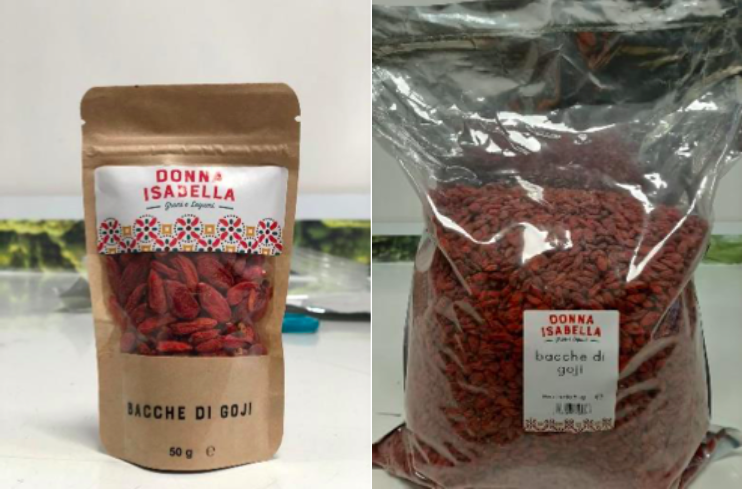 - Bacche di goji, in confezioni da 50 g, 500 g, 1 kg e 5 kg, con i numeri di lotto L917134065, L919054403, L919655459, L920653169, L922037282, L9239399 82, L923940062, L932639824, L933032143, L935539073 e L004131015.