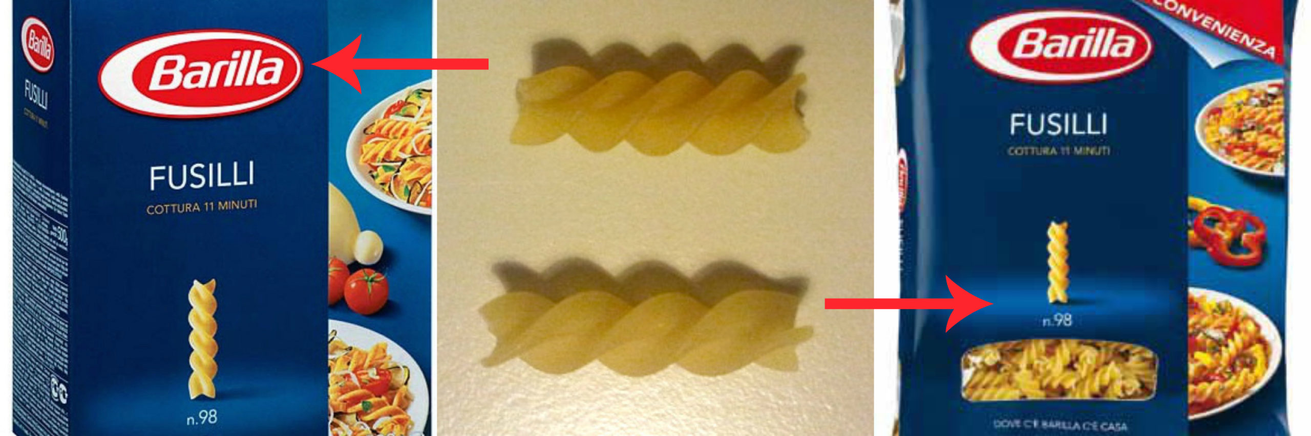 In ogni caso le trafile utilizzate per i prodotto sono sostanzialmente diverse, si noti che anche il passo delle spirali è diverso. Personalmente non credo si tratti di una svista…altrimenti sarebbe veramente grossolana…per Barilla.