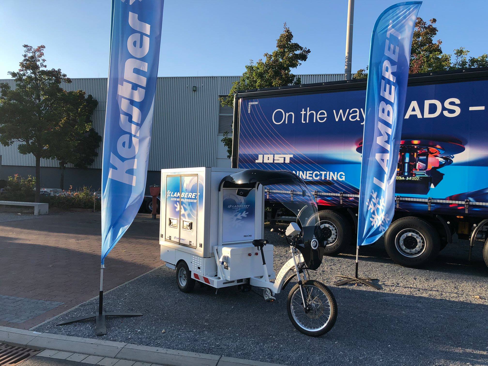 Il cibo a domicilio in città viaggia in bici. Lo osserviamo sempre più spesso. Il problema più delicato riguarda il mantenimento della catena del caldo, ma soprattutto del freddo. Per ovviare a questo problema e trasportare sulle due ruote anche piatti da mantene a +4°C è stata presentata ad Hannover in occasione del Salone dei veicoli commerciali 2018 una bicicletta frigorifero. Il veicolo ha tre ruote, è elettrico e utilizza la pedalata assistita a zero emissioni e zero rumore.