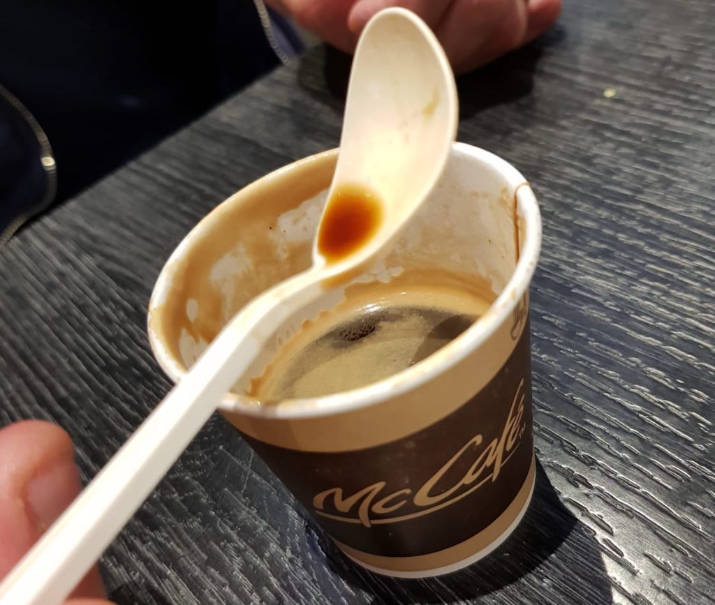Buongiorno, sabato sera al McDonald’s di Arese (presso il centro commerciale) mi è successo quanto segue: acquisto un caffè e al termine della cena e mi viene fornito in una tazza di carta accompagnato da un cucchiaino. Metto lo zucchero nella bevanda calda, mescolo tranquillamente e mi accorgo dopo circa 10 secondi il cucchiaino comincia a “sciogliersi”. Ora non so se si tratti di un errore avermi consegnato il cucchiaino in Mater-bi (invece del legnetto che solitamente è più adatto per mescolare una bevanda calda) o se sia prassi di McDonald’s consegnare questi cucchiaini. Ho ovviamente conservato il cucchiaino per riferimento, in allegato invio alcune foto. Marco