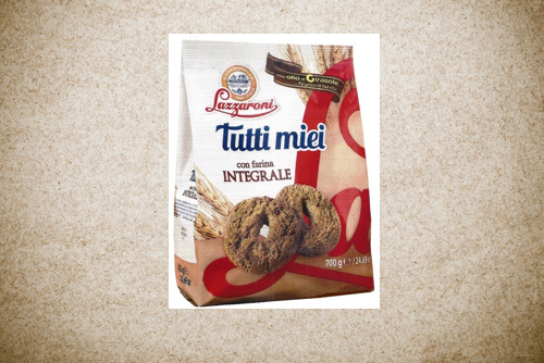 È stato rilevato un altro biscotto senza olio di palma: si tratta di “Lazzaroni Tutti miei”, un biscotto con farina integrale, in sacchetto da 700 g. Questo prodotto ha focalizzato la nostra attenzione perché oltre ad essere una novità nell’assortimento, propone una scritta sull’etichetta che indica l’impiego di olio di girasole. Altre marche di biscotti come Misura o Di Leo hanno fatto scelte più decise e indicano in evidenza sulla confezione la dicitura “senza olio di palma”. In questo caso Lazzaroni è più discreto, aggiunge anziché togliere – “con” anziché “senza”- e valorizza l’olio di girasole “con olio di girasole …. Fai girare la tua vita”.