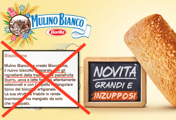 Il nuovo Biscottone Mulino Bianco non è preparato con gli ingredienti “tradizionali” della pastafrolla. Barilla dopo la nostra segnalazione modifica il sito