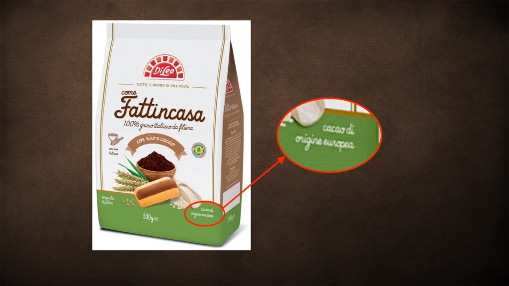 Qualche consumatore acquisterà più volentieri attratto dal claim sull’origine europea del cacao però coltivato in un indeterminato Paese tropicale?