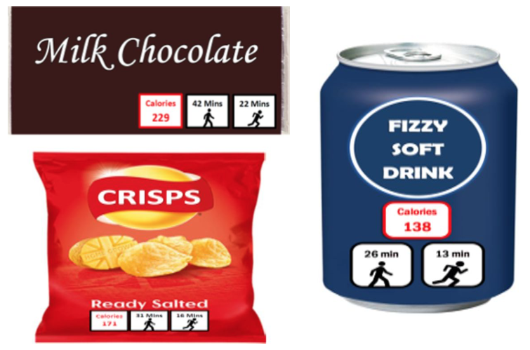 L’indicazione delle calorie serve forse a poco, visto che alla maggior parte delle persone manca il contesto per capirla. Ma se leggi che quei 3 pacchetti di patatine e due lattine di Coca-Cola che hai ingurgitato richiederebbero 2 ore di corsa è un po’ difficile non realizzare che due ore di corsa o equivalente attività non le farai probabilmente mai.