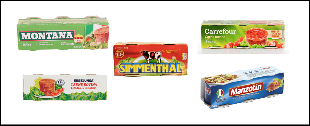 Il settore è concentrato: poche marche molto note e diffuse rappresentano la quasi totalità del mercato, a cui si sono aggiunte negli anni le marche commerciali. le aziende storiche sono Simmenthal, Manzotin e Montana, ciascuna con prerogative proprie nella comunicazione al consumatore. Simmental, ad esempio, punta molto sull’identificazione della marca con il prodotto, mentre Manzotin e Montana sottolineano entrambe l’italianità.