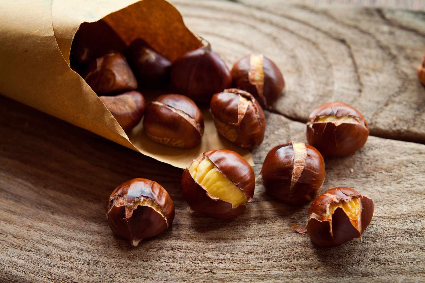 Al supermercato un chilo di castagne costa circa 5-7 euro, mentre si sale a 9-10 euro per un chilo di marroni, in particolare se sono Igp o Dop. Come si distinguono le castagne dai marroni? Le prime hanno forma più schiacciata e sono in genere più adatte ad essere arrostite, i secondi sono bombati e vanno bene sia arrostiti che bolliti, perché la pellicina interna si stacca facilmente.