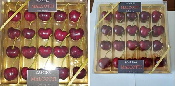 Sulla rivista di settore FreshPlaza.it abbiamo scoperto che c’è un’azienda piemontese propone ciliegie, confezionate come se fossero cioccolatini. La Cascina Malcotti ha pensato di promuovere le più belle e grandi del proprio assortimento in una scatola “formato regalo” che ricorda quelle dei cioccolatini, ma di cui non conosciamo il prezzo al dettaglio.