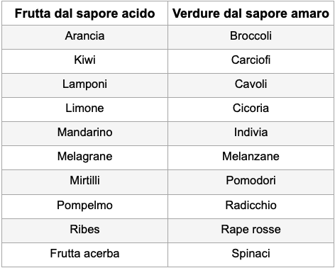 Il bambino accetta immediatamente frutta e verdura dal sapore dolce, come mela, pera, banana, zucchine e carote. Questo accade perché il gusto dolce gli è già familiare, avendolo assaporato nel grembo materno attraverso il liquido amniotico e, nei primi mesi di vita, tramite il latte materno. Invece, per quanto riguarda la frutta e la verdura dal sapore acido o amaro, l’accettazione può non essere immediata, perché il bambino deve abituarsi al loro gusto attraverso ripetute esposizioni.