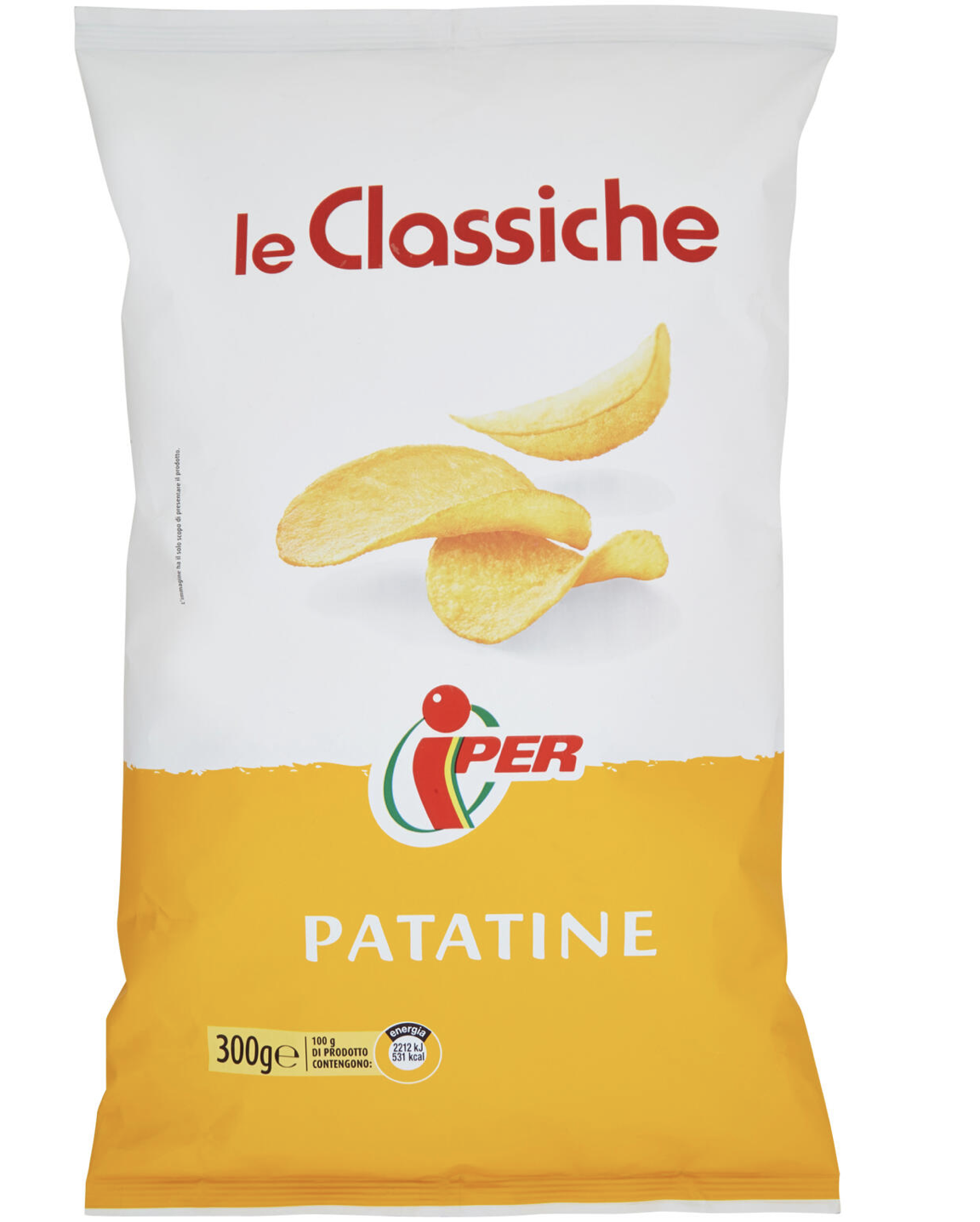 Per rendersi conto di quanto queste patatine a forma di onda (o meglio di paraboloide iperbolico) siano il frutto d’un esagerato processo industriale, le abbiamo confrontate con quelle classiche che hanno una lista di ingredienti composta da tre voci: patate, olio di girasole e sale. La foto è quella delle patatine Iper ma anche altre marche come Pai, San Carlo, Amica Chips e Lay’s hanno la stessa ricetta e un apporto calorico di (530 kcal/100 g). La differenza è che alcune utilizzano per la frittura oltre che l’olio di girasole anche olio di palma e/o di mais. Il costo varia da 6 €/kg per quelle con il marchio del supermercato sino a 9-10 per quelle di marche famose.
