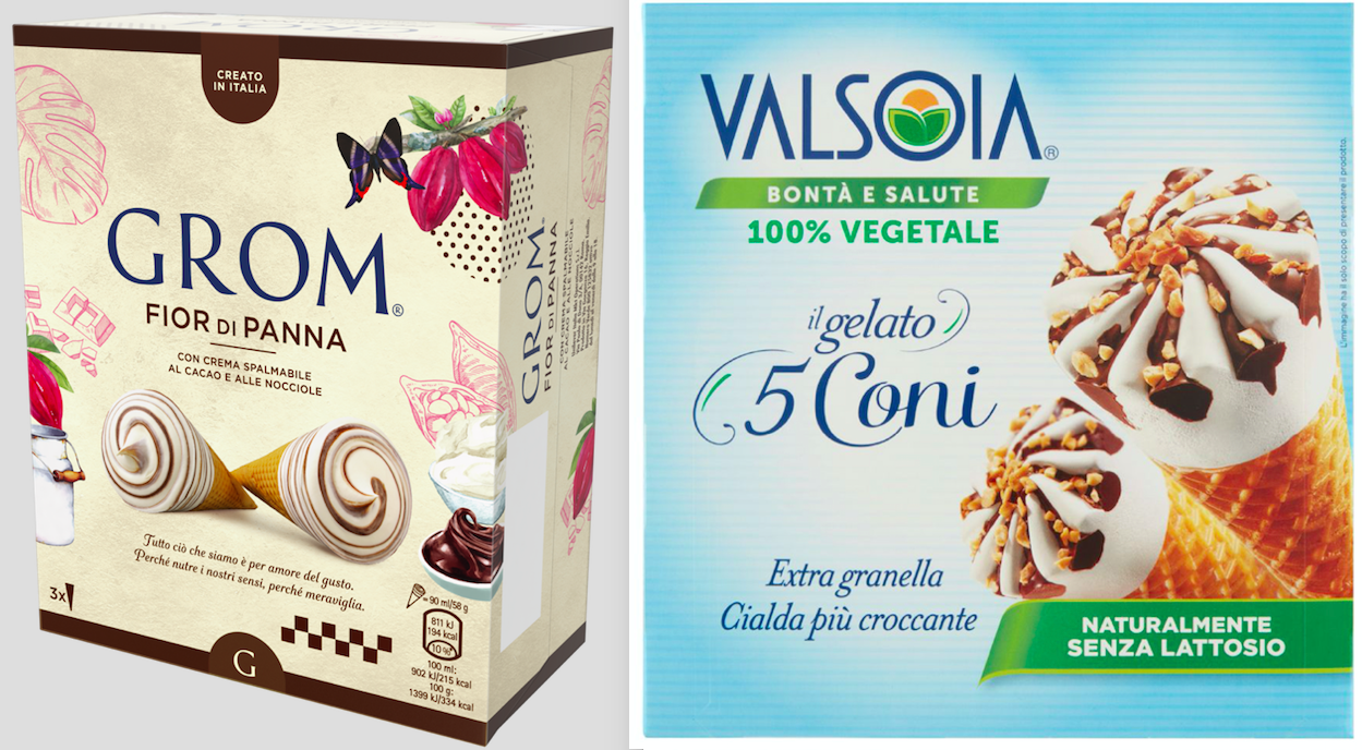 Per quanto riguarda i prezzi, i coni con il marchio dei supermercati costano circa 5 €/kg, il cono Sammontana 7-8 €/kg e il Cornetto classico circa 9, quello Valsoia 9-10 €/kg. I coni Grom sono prodotti, è vero, con meno additivi, però arrivano a costare circa 28 €/kg!