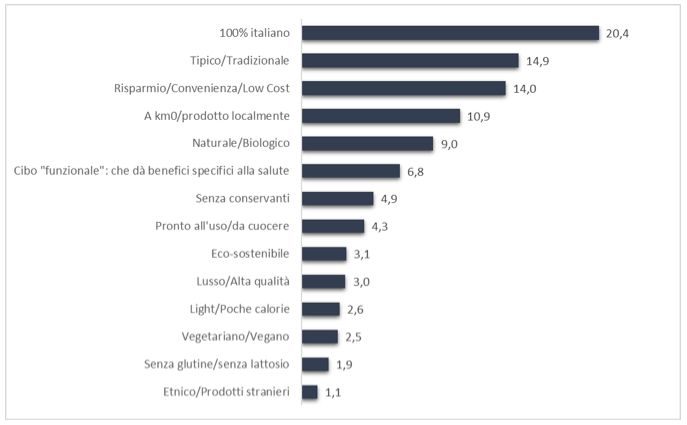 Interessanti anche i criteri che guideranno i consumatori nella scelta dei prodotti da acquistare. Oltre il 20% degli intervistati dichiara di preferire cibo 100% italiano e i prodotti tipici e tradizionali (15%). Provenienza e tradizione battono la convenienza, fattore che influenza gli acquisti alimentari del 15% dei consumatori. Come criteri di scelta, seguono il chilometro zero e il biologico, mentre i prodotti “senza”, i cibi vegetariani e vegani e quelli etnici sono importanti solo per una nicchia di consumatori.