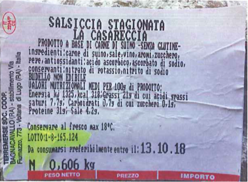 Il prodotto interessato è venduto intero in confezioni da circa 600 grammi con il numero di lotto 1-8-165.124 da consumarsi preferibilmente entro il 13/10/2018. La salsiccia stagionata è stata prodotta dall’azienda Terremerse Soc. Coop. nello stabilimento di via Fiumazzo 773 a Voltana di Lugo, in provincia di Ravenna, con il marchio di identificazione IT 2234 P.
