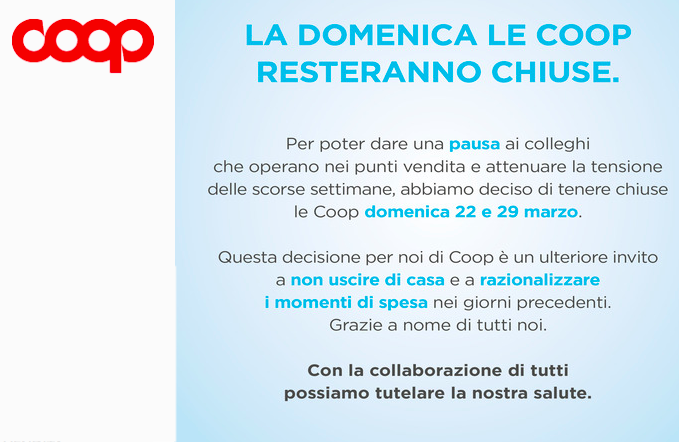 Gli orari più stringenti e lo stop domenicale permetteranno ai dipendenti di godere di qualche ora di riposo e di spostarsi con i mezzi pubblici prima delle 21, orario della fine di servizio, ripristinare le scorte in magazzino e soprattutto limitare gli assembramenti.