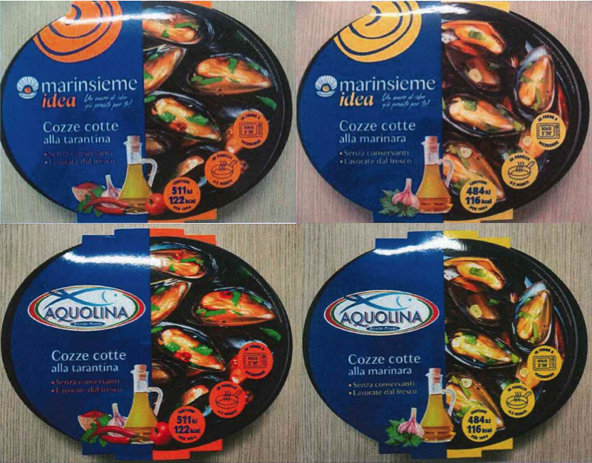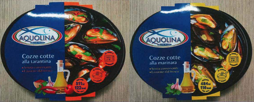 - Cozze cotte alla tarantina e alla marinara Aquolina con il numero di lotto 2021/98361 e la data di scadenza 01/10/2021.