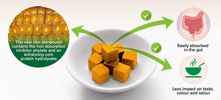 Stavolta si è cercata una soluzione diversa, che tenesse insieme gli aspetti positivi di entrambe le soluzioni. Si è arrivati così a un brodo (di pollo o vegetale) che contiene proprio un fitato, il fitato monoferrico (o Fe-PA), però legato a nuovi complessi proteici, per aumentarne digeribilità e tasso di assorbimento.