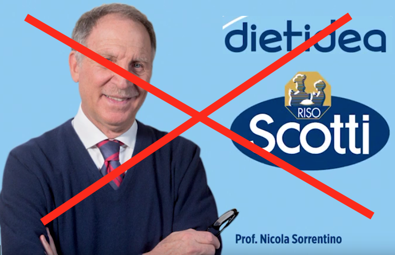 C’è di più, la dieta definita come “ipocalorica, bilanciata e detox … studiata per lui (1300 Kcal) e per lei (1000Kcal)”, non viene prospettata come regime alimentare da seguire sotto controllo medico. Lo spot lascia intendere che la dieta molto restrittiva si possa fare quando serve, e non dice in modo chiaro che può essere eseguita solo una o due volte al mese. La sentenza poi censura direttamente il dietologo Nicola Sorrentino (un personaggio noto al grande pubblico), perché conferisce un’aura di scientificità alla dieta del Riso Scotti che in realtà non esiste. La presenza del medico viola l’articolo del codice di autodisciplina che vieta “di presentare diete spersonalizzate elaborate da esperti come universalmente valide“.
