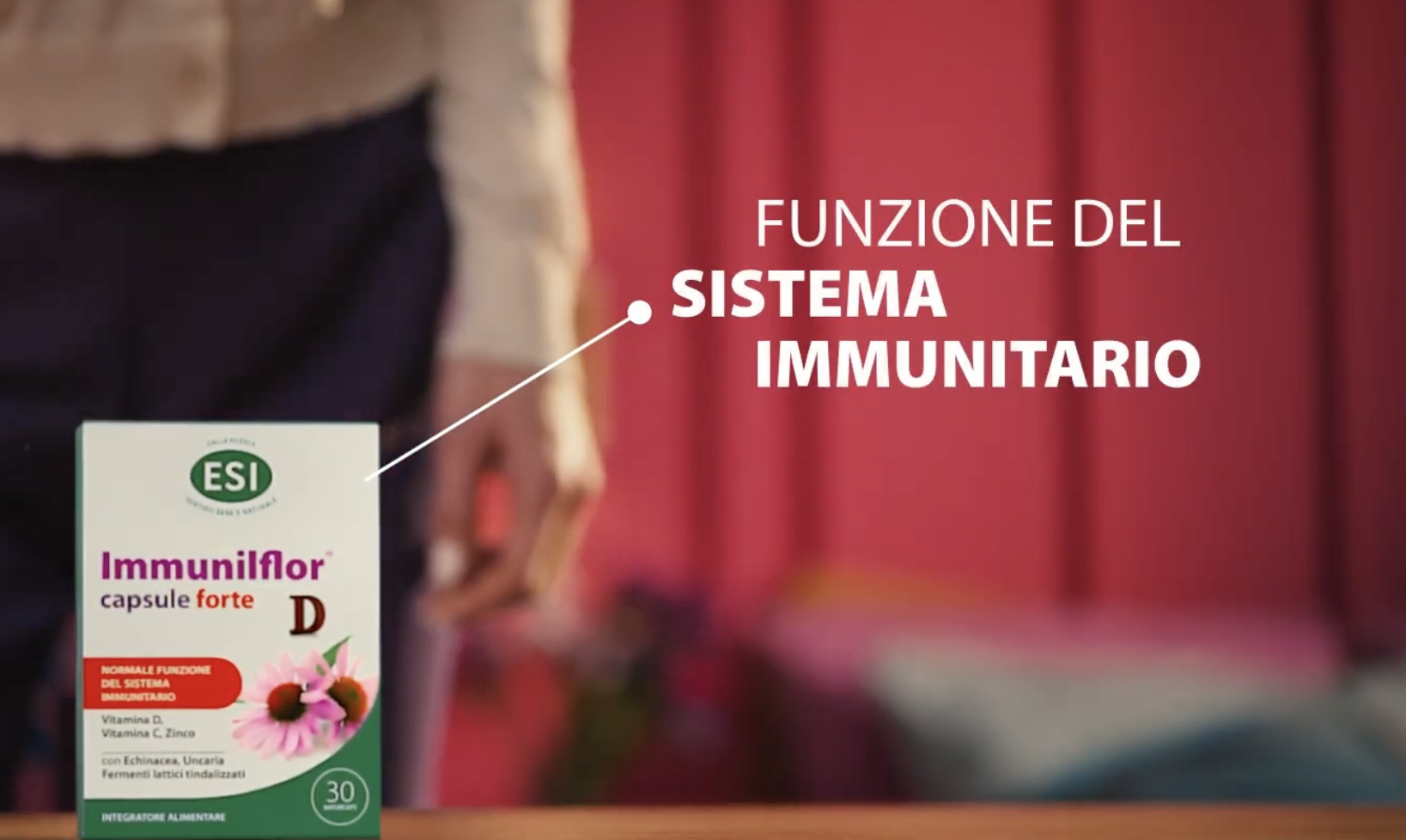 Il messaggio pubblicitario, volto a promuovere Immunilflor, è incentrato sullo slogan “Per rafforzare le difese immunitarie”. Nella scena, una donna, inizialmente molto vestita, risponde a una voce fuori campo di doversi ‘coprire’ per le difese immunitarie. Lo speaker suggerisce allora di provare l’azione di Immunilflor come integratore alimentare di origine naturale “per la normale funzione del sistema immunitario”. La donna, tolti gli abiti in eccesso, conclude con un enfatico “Funziona!”