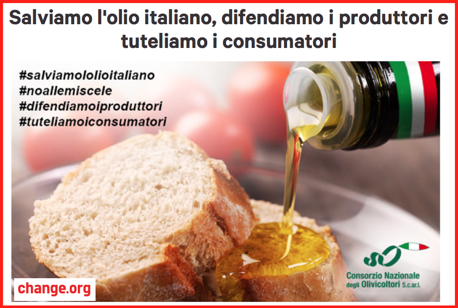 La risposta dei produttori non si è fatta attendere. Il Cno, Consorzio nazionale degli olivicoltori, ha persino lanciato una petizione su Change.org contro “le squallide miscele” e per salvare il vero olio extravergine d’oliva 100% italiano.