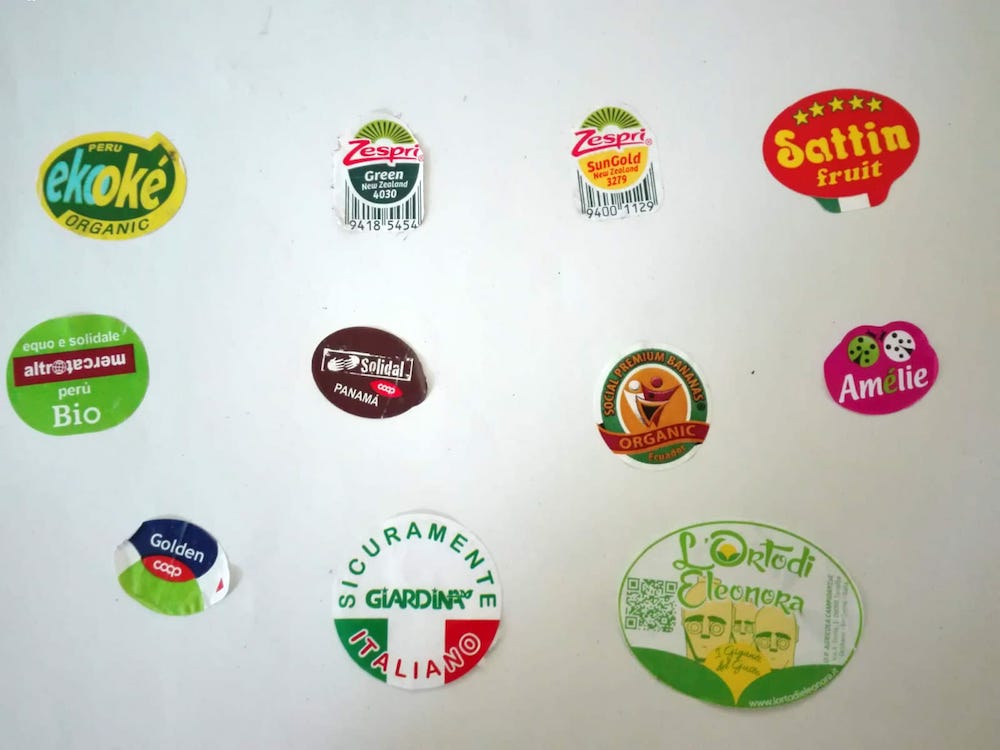 Anche per la frutta marchiata con bollini multicolore che evidenziano la marca e il logo del produttore si pone un problema analogo. All’inizio c’erano solo le banane, poi sono arrivate le mele del Trentino, le pere dell’Emilia-Romagna e ormai molti tipi di frutta hanno il bollino autoadesivo. In questo caso se non si ha l’accortezza di scollarlo, il bollino finisce nel contenitore del rifiuto umido di casa. A questo punto viene spontaneo chiedersi quante persone hanno l’accortezza di togliere la piccola etichetta autoadesiva?