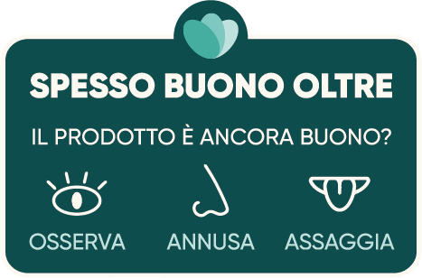 La dicitura non suona nuova per gli addetti ai lavori visto che si tratta della stessa che compare sull’Etichetta consapevole che l’app antispreco Too Good To Go ha introdotto in Italia nel 2021, insieme a un gruppo crescente di aziende aderenti, tra cui Granarolo, NaturaSì, Cameo ed Eridania (ne abbiamo parlato in questo articolo e in questo articolo). L’etichetta di Too Good To Go, oltre alla scritta ‘Spesso buono oltre’ presenta i disegni stilizzati di un occhio, un naso e una lingua (vedi immagine sotto), per invitare i consumatori e le consumatrici a osservare, annusare e assaggiare un prodotto che ha superato il termine minimo di conservazione prima di buttarlo nella spazzatura. Per ora non si sa se la proposta europea preveda un formato grafico simile a questo o soltanto l’aggiunta della dicitura al Tmc.