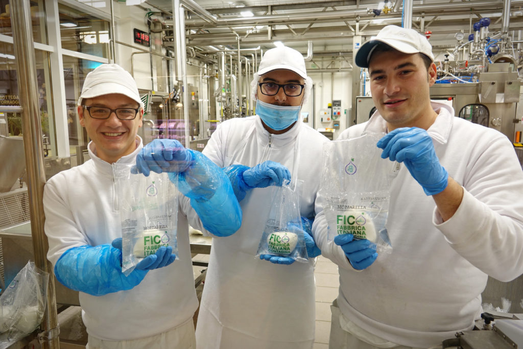 All’interno del parco sono presenti anche delle vere e proprie fabbriche (13 per la precisione), in cui viene prodotta la birra artigianale, il Grana Padano, la Mortadella di Bologna e così via. Tra queste c’è anche la centrale del latte di Granarolo, un’azienda nata 60 anni fa proprio a pochi chilometri da dove ore sorge Fico. “Non potevamo mancare” racconta Gianpiero Calzolari, presidente di Granarolo. “Nel nostro spazio abbiamo allestito una fabbrica dove è possibile vedere come nasce e come si “costruisce” una mozzarella. – prosegue Calzolari, che ci spiega anche come l’obiettivo più ampio dell’azienda sia quello di – raccontare cosa c’è dietro a un litro di latte: tutta la filiera dalla terra, alla stalla, alla fabbrica, fino alla logistica e al fine vita dei prodotti”.