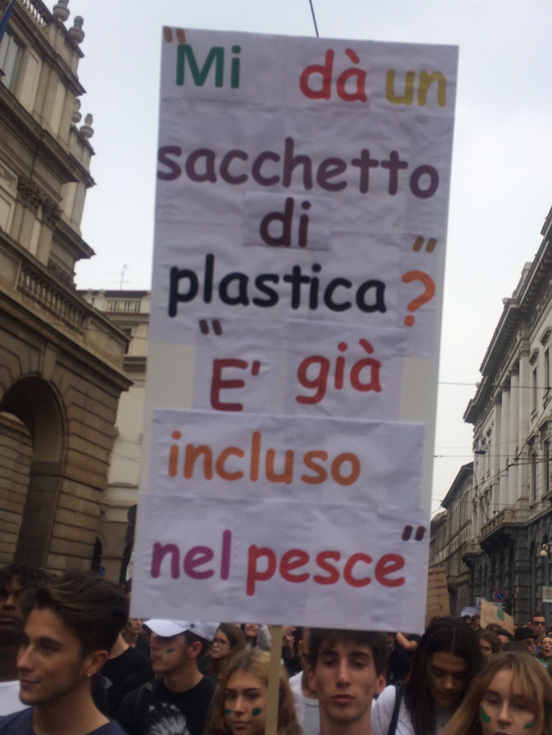 Nella bellissima manifestazione di oggi a Milano per Friday for the future, ho visto sfilare per un’ora oltre 70 mila ragazzi con tantissimi cartelli colorati pieni di scritte contro l’inquinamento, la distruzione dell’ambiente e i modelli di vita e di consumo poco eco-frienfly.
