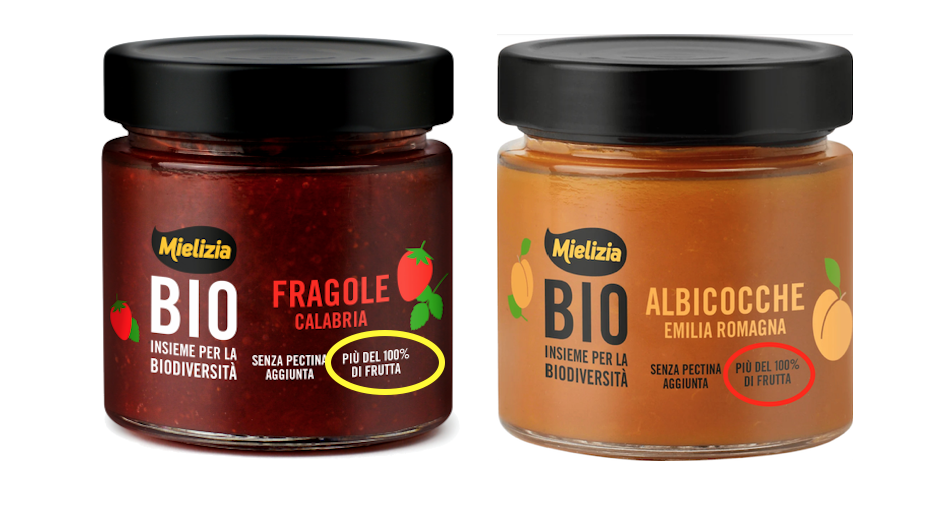Vorrei chiedere la vostra opinione in merito al claim delle composte Mielizia. In etichetta scrivono che è contenuto “Più del 100% di frutta”!!!! In realtà, leggendo la lista degli ingredienti, si scopre che la frutta è l’82% del prodotto… Nel testo che descrive il prodotto sullo shop online dell’azienda spiegano che “è realizzata utilizzando più di 100 grammi di frutta per 100 grammi di prodotto finito”. Quindi, seguendo lo stesso ragionamento, sul formaggio potrei scrivere che contiene il 1000% di latte, dato che per fare un kg di formaggio ne servono 10 di latte?