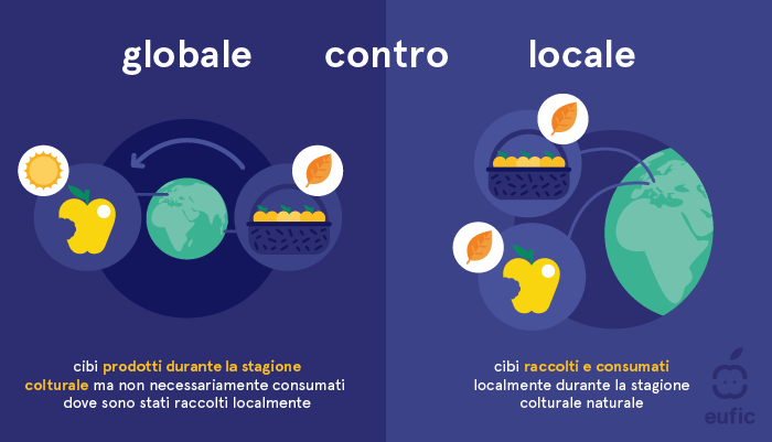 Stagionalità locale: fa riferimento al luogo di produzione e di consumo del cibo e rimanda a frutta e verdura raccolta e consumata localmente durante la loro stagione di raccolta. Ad esempio, mele cresciute e raccolte durante l’estate e l’autunno e consumate in ottobre in Europa.