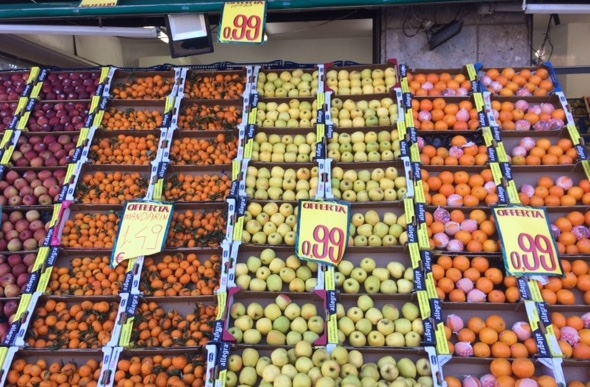 Come fa il fruttivendolo vicino alla stazione di Lambrate, a Milano, a vendere ogni giorno frutta e verdura a 0,99 € al kg? Il negozio ha una certa visibilità perché ha costruito all’esterno una sorta di orto verticale alto 3 metri e lungo 10, fatto con cassette di mele, arance, mandarini… Una grande insegna precisa che la merce è anche italiana. Il problema è che nei tre supermercati distanti poche centinaia di metri i prezzi sono più alti, anche se si sceglie la frutta meno costosa, confezionata in sacchetti da 1-2 kg. Abbiamo rivolto la domanda agli addetti dell’ufficio rilevazione prezzi e statistiche dell’Ortomercato di Milano, considerato uno dei più grandi in Italia.