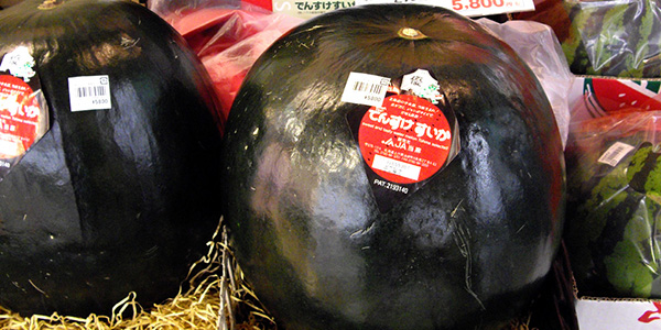 La perfezione dei frutti giapponesi ha un costo altissimo; così elevato che, quando veniamo a conoscenza delle cifre in gioco, rimaniamo a bocca aperta. Lo stupore davanti a certi prezzi è normale, ma bisogna anche immedesimarsi in una cultura completamente differente dalla nostra. Nel Paese del Sol Levante, infatti, la frutta ha un’accezione particolare, come dimostra il fatto che sia venduta al pezzo e non al chilo come in Italia. Questo tipo di vendita è possibile perché tutti i prodotti hanno le stesse dimensioni e lo stesso peso. Ciò è dovuto alla cura maniacale che i nipponici mettono in ogni singolo prodotto. Le angurie cubiche, per esempio, sono coltivate in appositi recipienti che le costringono ad assumere quella forma unica.