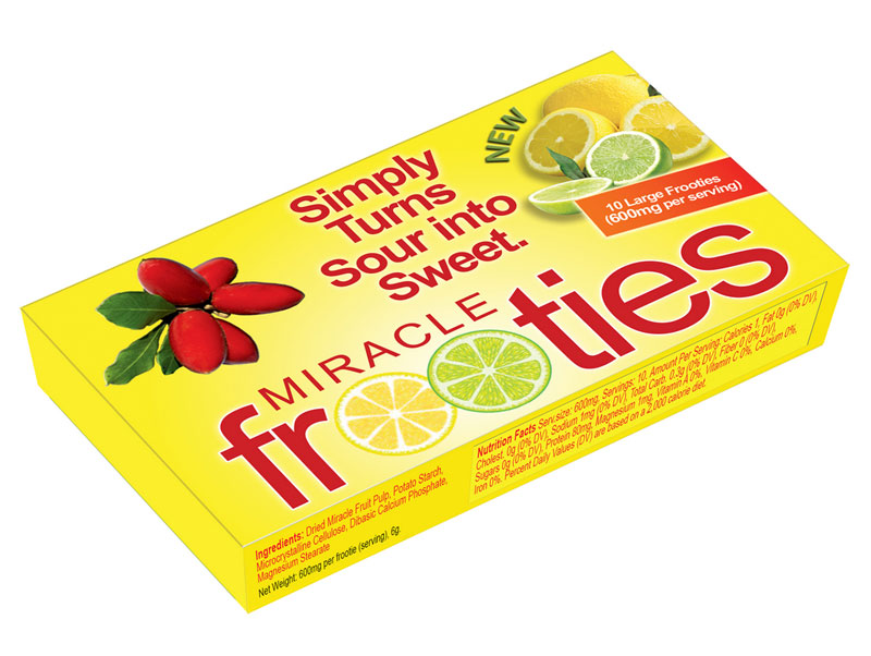 Il prodotto, proveniente dagli Stati Uniti, è venduto online attraverso il sito Frutto miracoloso, è distribuito da Miracle Fruit World LLC in blisters da 300 o 600 mg e venduto alla modica cifra di 10,65 € per la confezione da 20 pastiglie. La pianta Synsepalum dolcificum viene sfruttata per la sua proprietà di trasformare temporaneamente il gusto acido e amaro in dolce, sostituendo zucchero ed edulcoranti. Il prodotto, secondo quanto riportato dal RASFF, è stato sottoposto al sequesto e la segnalazione è partita dalla Danimarca. Frooties si può acquistare online in Austria, Repubblica Ceca, Danimarca, Finlandia, Francia, Germania, Ungheria, Italia, Paesi Bassi, Lettonia, Norvegia, Polonia, Portogallo, Romania, Spagnia, Svezia e UK.