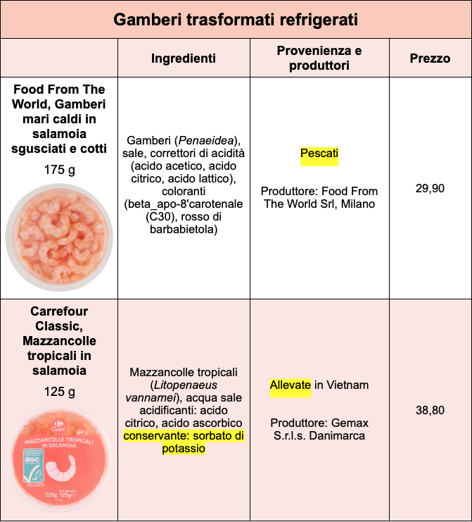 “Nei prodotti trasformati non è necessario indicare la specie ittica, né se si tratta di gamberi pescati oppure allevati. – Sottolinea l’esperta – In questo caso quindi le informazioni sono meno trasparenti. Alcuni produttori però riportano comunque queste indicazioni e ci sembra una scelta apprezzabile, nel segno della trasparenza.”