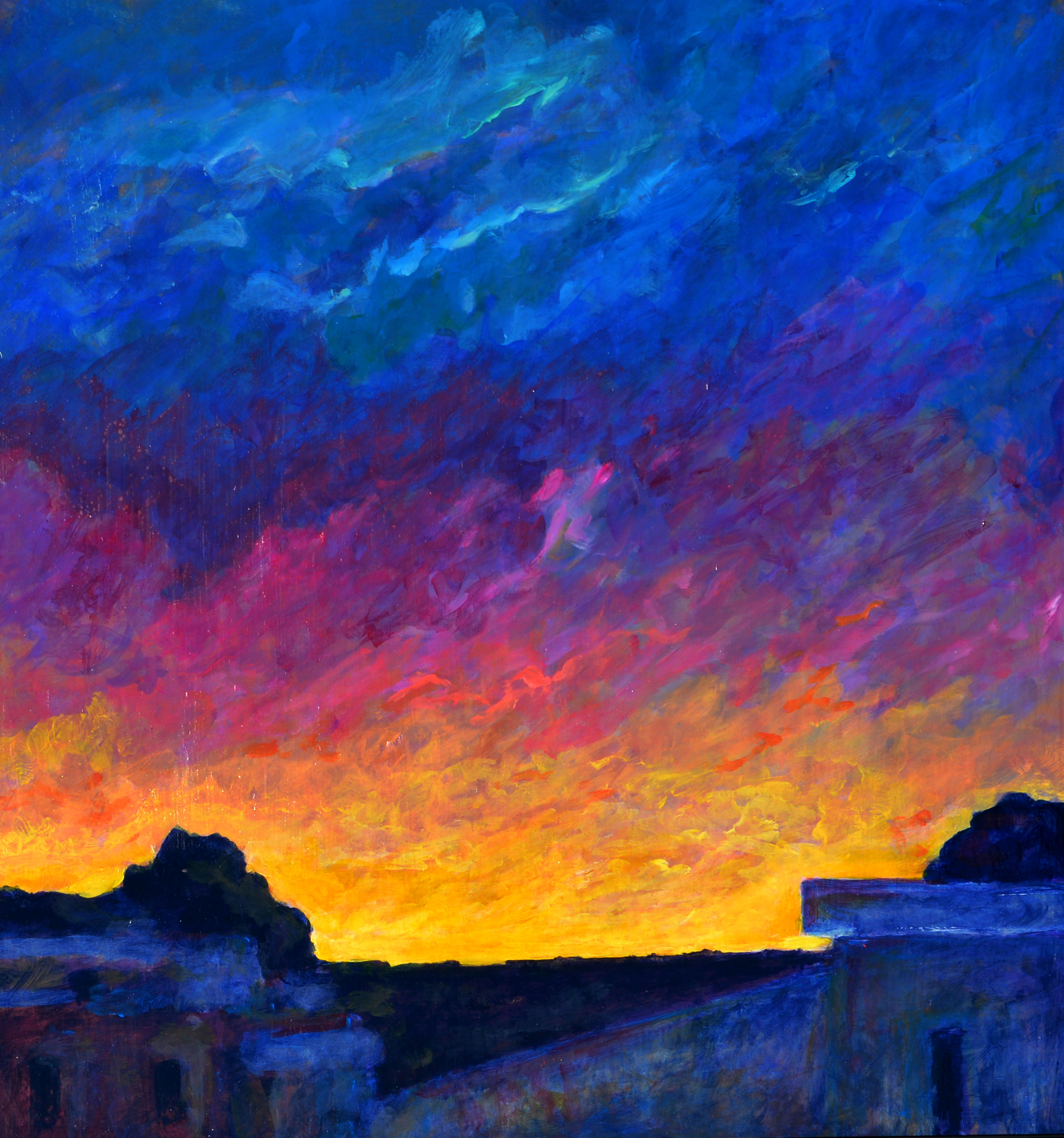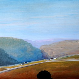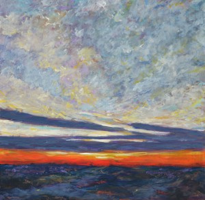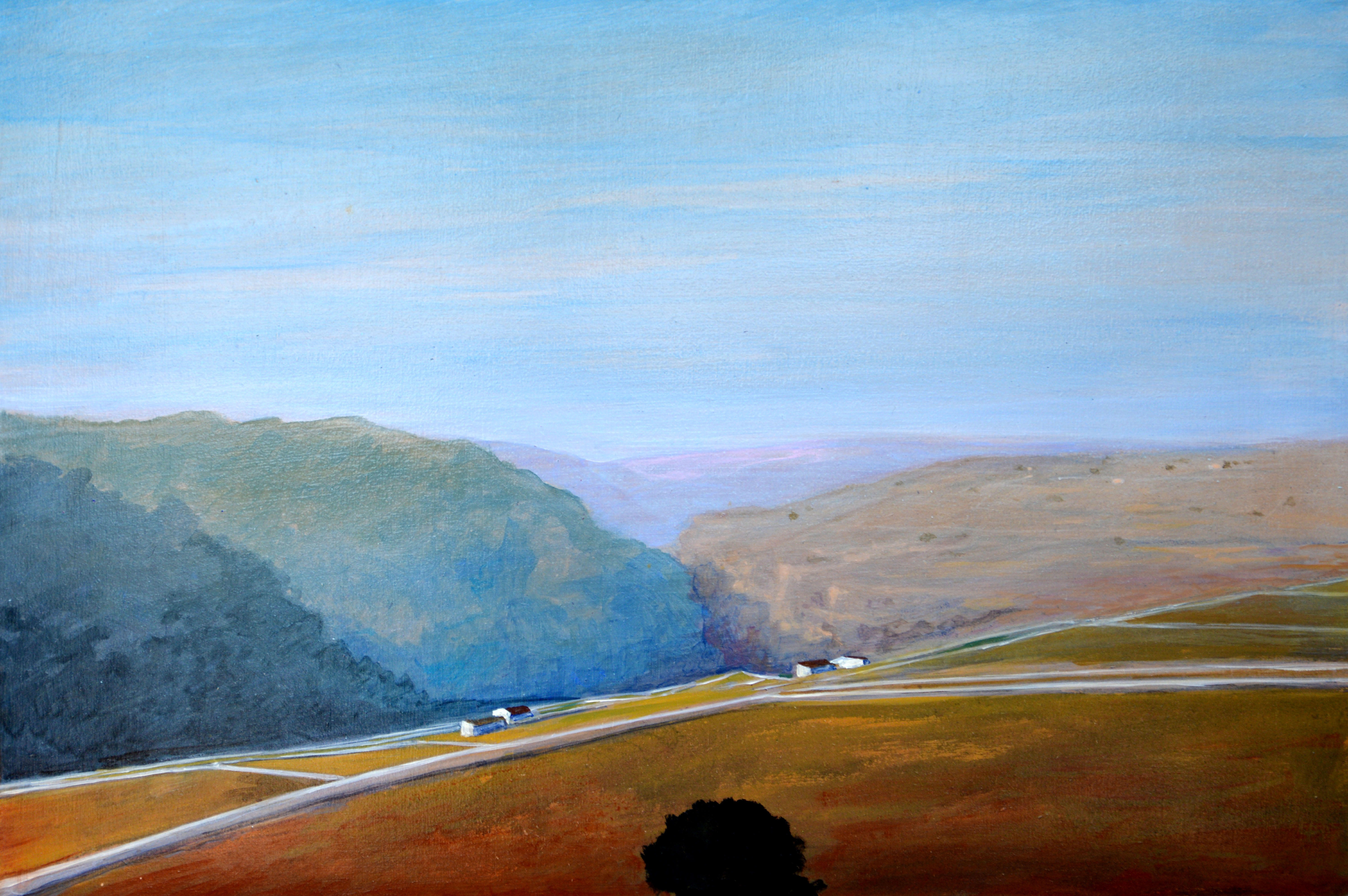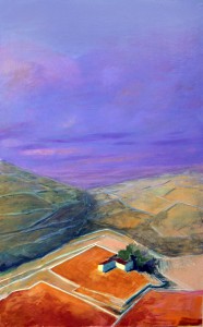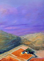 La mostra ha presentato venticinque tra i lavori di Fratantonio, realizzati negli ultimi due anni, raffiguranti paesaggi, tramonti, distese di campi. «La campagna – spiega lo scrittore Diego Guadagnino nel catalogo – disseminata di carrubi e casolari, sezionata da geometrie pietrose, è colta dall’alto, a una distanza che rimpicciolisce tutto quanto è a misura d’uomo senza eccezione alcuna, compresa la soggettività di chi la osserva». Sono i colori a lasciare stupiti: dal verde luminoso ai cieli rossastri, dalle venature giallo-marmoree delle nubi al viola della sera .