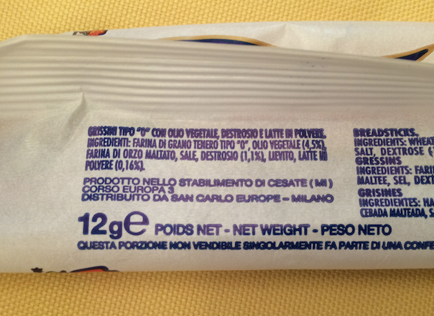 - a maggior onta, si osa riferire alla “più genuina tradizione torinese” un grissino che in lista ingredienti riporta il 4,5% di indefiniti “grassi vegetali”. La natura di tali grassi dovrà venire specificata, inderogabilmente, a partire dal 14.12.14 (si veda ebook L’Etichetta). Già ora peraltro si può facilmente dedurre una netta discordanza del citato ingrediente con le tradizioni non solo torinesi, ma pure italiane. Gli “oli vegetali” in questione sono con ogni probabilità grassi tropicali ricavati dalla palma, oppure soia, colza o mais. Tutte colture che sfuggono alla “tradizione italiana”, è certo.