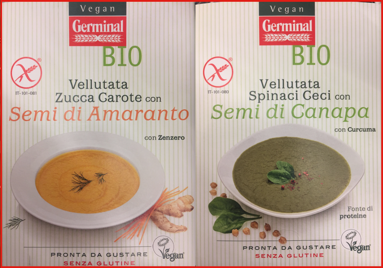 Vorrei un vostro parere sulle etichette di due zuppe vegan bio senza glutine della Germinal. La prima è presentata come “Vellutata Zucca Carote con Semi di Amaranto”, la seconda “Vellutata Spinaci Ceci con Semi di Canapa”, però mi sembra che di questi semi ce ne siano pochissimi. Le due zuppe non costano neppure poco, quattro euro circa. Le sembra giusto? Elisa