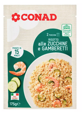 Nei ravioli Rana “Oro rosso”, per esempio, ripieni di astice e gamberi, la polpa d’astice rappresenta il 20% del ripieno, che a sua volta corrisponde al 59% del prodotto. Una porzione da 125 g quindi, contiene 15 g scarsi di polpa d’astice e una pari quantità di gamberi. La quantità di crostacei è ancora inferiore nel risotto liofilizzato alle zucchine e gamberetti a marchio Conad. In questo caso la busta da 175 g corrisponde a due porzioni, per prepararla però sono necessari 600 ml di acqua: il peso finale sarà pari a 775 g, quindi circa 390 g a testa. La percentuale di gamberetti, sul totale è l’1,8%, quantità che corrisponde a 7 g.