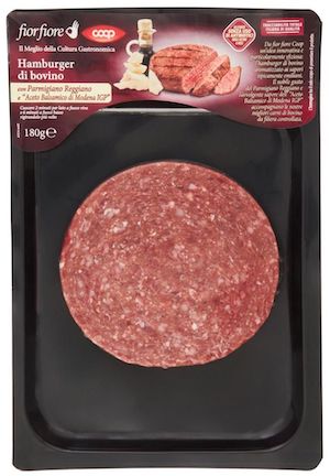 L’aceto balsamico è un condimento pregiato e profumato. Per insaporire un piatto ne basta poco e certo non è in eccesso quando va ad arricchire i piatti pronti che troviamo al supermercato. L’hamburger di bovino con parmigiano reggiano e “aceto balsamico di Modena Igp” Fior fiore Coop contiene il 4% di crema all’aceto balsamico, la quale a sua volta è preparata con il 20% di aceto balsamico, si tratta quindi dello 0,8%, che in un hamburger da 180 g, corrisponde a 1,4 g.