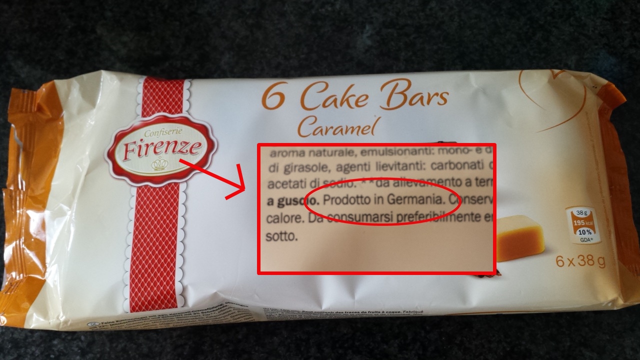 Dunque, in buona sostanza, se la tortina “Firenze” riporta l’indicazione che è stata prodotta in Germania, è formalmente corretta, ma si consiglia di fare molta attenzione a tutto quello che è scritto in etichetta per capirne la reale provenienza.