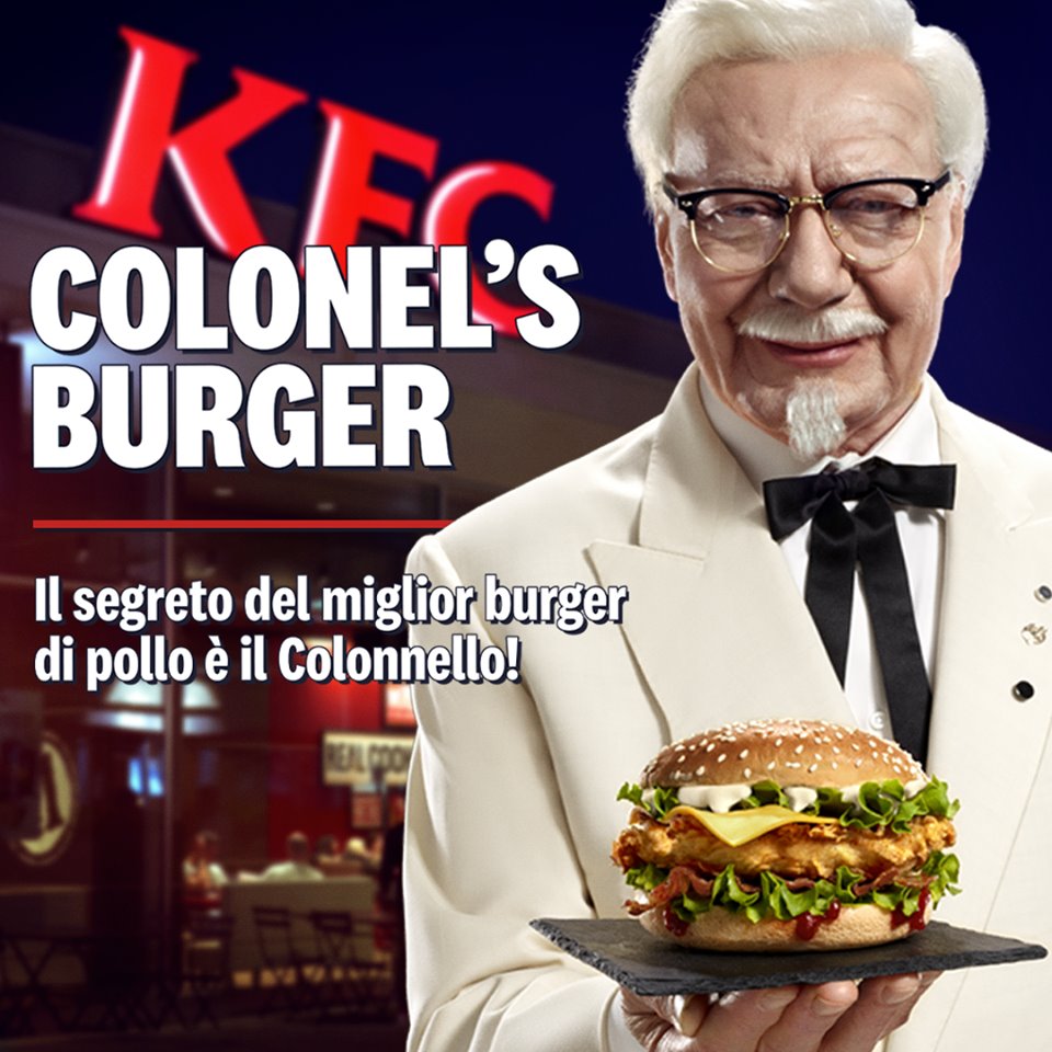 “Il Colonnello ha speso tutta la vita a ripetere gli stessi gesti con maniacale perfezione, facendo della cura dei dettagli uno stile di vita”. Non stiamo parlando nè di Esercito nè di Marina militare, ma ci riferiamo ad Harland Sanders, il fondatore e tuttora uomo-immagine della nota catena Kentucky Fried Chicken (KFC), famosa per il pollo fritto. Nel 1935, apprezzato come ristoratore e per la capacità imprenditoriale, venne nominato “Colonnello del Kentucky” e nonostante di colonnelli famosi ce ne siano parecchi (come Walt Disney, Shirley Temple e Johnny Depp) Sanders è per tutti “Il Colonnello”. In questi giorni la novità di KFC è il panino che porta proprio il suo nome, il Colonel’s burger.