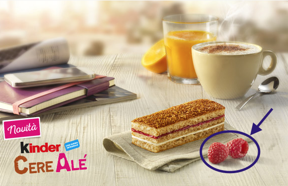 Ferrero, però, propone la merendina CereAlé come un prodotto “con yogurt e confettura di lamponi”, lamponi di cui enfatizza la presenza con un richiamo grafico in etichetta e con fotografie proposte sul sito. Queste modalità di presentazione esplicitano che il lampone è essenziale per caratterizzare il prodotto: il consumatore va e quindi informato in modo chiaro e trasparente sull’effettiva quantità dell’ingrediente .