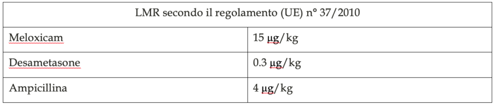 Il regolamento (UE) n°37/2010 fornisce un elenco dettagliato della massima concentrazione ammessa del residuo di una determinata sostanza attiva presente in una alimento. Se l’analisi rileva una concentrazione di una sostanza, che può essere un contaminante chimico, un farmaco o un agro-farmaco, al di sotto dell’LMR indicato da questo regolamento, l’alimento è considerato sicuro e utilizzabile per l’alimentazione umana.