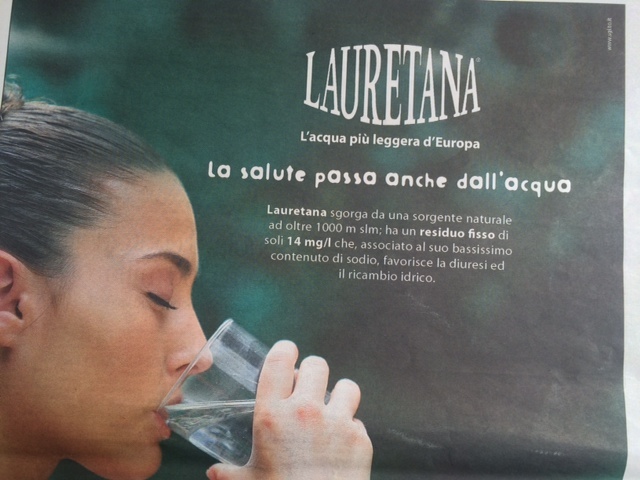 Sotto un secondo profilo, si afferma nell’articolo che le caratteristiche di Lauretana non la renderebbero un’acqua particolarmente consigliabile, perché (quasi) priva di sali minerali di cui il corpo umano certamente si giova. Ora, la pubblicità di Lauretana si fonda sull’esposizione chiara, trasparente e oggettiva delle caratteristiche fisico-chimiche del prodotto, le quali si qualificano particolarmente per il ridotto contenuto di sali minerali e il bassissimo contenuto di sodio. Va da sé, e non può essere negato, che l’acqua Lauretana sia particolarmente utile per chi preferisca (o comunque sia tenuto) a praticar diete povere di sodio (e di altri sali). Che poi il sodio disciolto nell’acqua sia poca cosa rispetto al sodio che ogni giorno si assume via altri alimenti o bevande è circostanza che non toglie nulla all’affermazione secondo cui una dieta povera di sodio è certo favorita dall’assunzione di un’acqua minimamente mineralizzata come appunto Lauretana.
